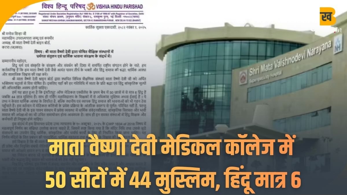 Mata Vaishno Devi Medical College: माता वैष्णो देवी मेडिकल कॉलेज में एडमिशन को लेकर बड़ा विवाद। 50 में से 44 मुस्लिम छात्रों को प्रवेश देने पर भड़की VHP, राज्यपाल मनोज सिन्हा को लिखा पत्र। पूरी खबर Bekhabar.in पर।