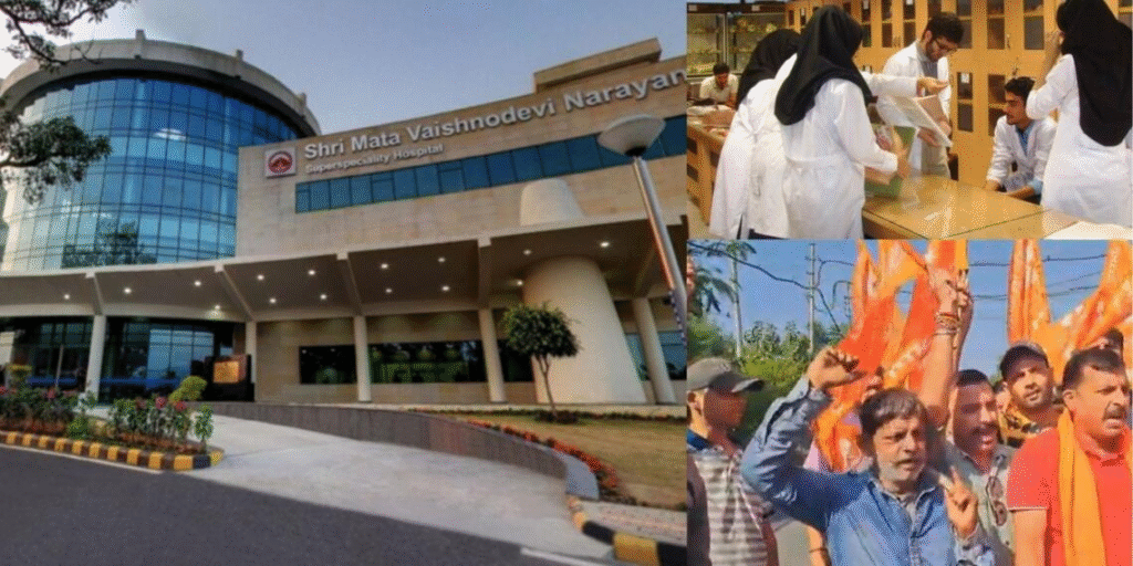 जम्मू-कश्मीर के कटरा में स्थित माता वैष्णो देवी इंस्टिट्यूट ऑफ मेडिकल एक्सिलेंस में एडमिशन प्रक्रिया को लेकर विवाद खड़ा हो गया है। विश्व हिंदू परिषद (VHP) ने आरोप लगाया है कि कॉलेज में 50 में से 44 सीटें मुस्लिम छात्रों को दी गई हैं, जबकि सिर्फ 6 सीटें हिन्दू छात्रों को मिली हैं। इस मामले को लेकर कल्कि सनातन समिति ने भी माता वैष्णो देवी श्राइन बोर्ड के खिलाफ प्रदर्शन किया।